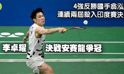 港將李卓耀今晨(19日)於印度羽毛球公開賽男單4強,...