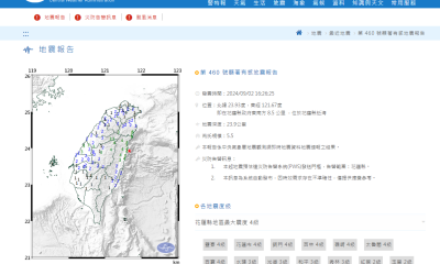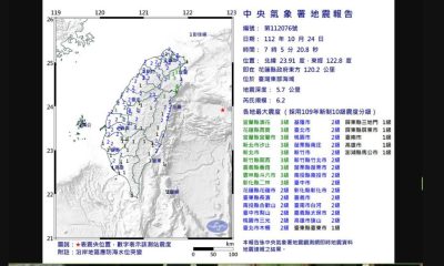 台灣宜蘭縣蘇澳鎮今早(9日)發生黎克特制5.8級地震...
