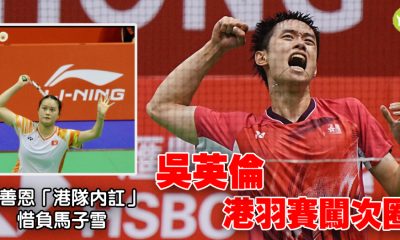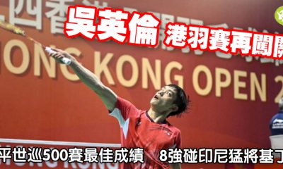 港隊20歲羽毛球新星吳英倫今午(12日)在香港公開羽...