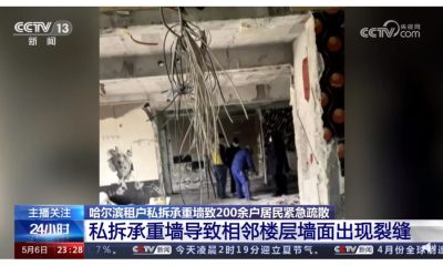 【明報專訊】黑龍江哈爾濱日前一座社區大樓因租客裝修,...