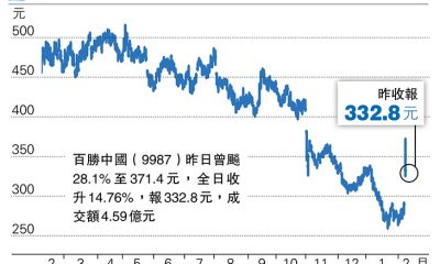 【明報專訊】在中國經營肯德基、必勝客等餐飲品牌的百勝...
