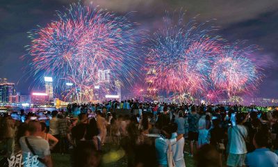 【明報專訊】國慶75周年煙花匯演昨晚在維港舉行,歷時...