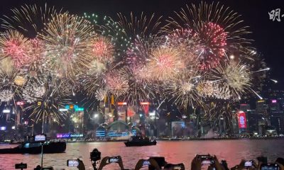 相隔5年,國慶煙花再度綻放,維港兩岸市民齊觀賞煙花的...