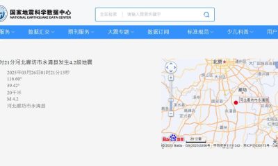 據中國地震台網測定,3月26日凌晨1時21分,河北廊...