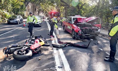 【明報專訊】沙田大埔公路昨日發生交通意外。一輛電單車...