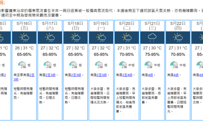一股偏南氣流正逐漸影響廣東沿岸。本港地區明日(16日...