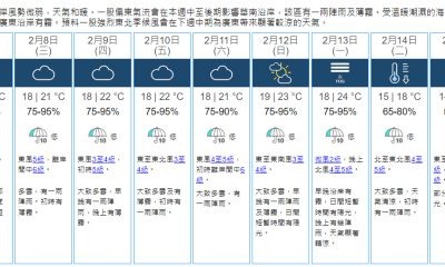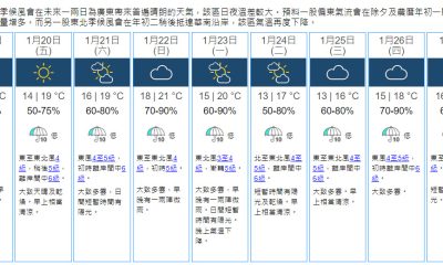 【19:50】本港地區今晚(5日)及明日(6日)天氣...