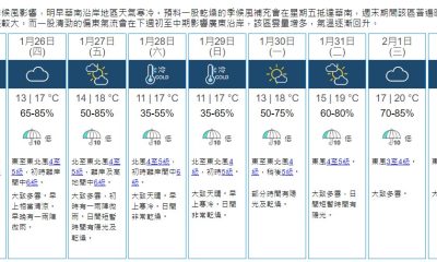 【19:00】天文台預測,本港地區今晚(26日)及明...