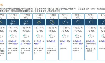 【20:00】天文台預測,本港地區今晚(27日)及明...