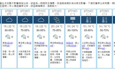 【20:45】本港地區今晚(8日)及明日(9日)天氣...