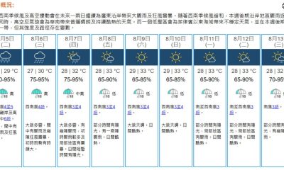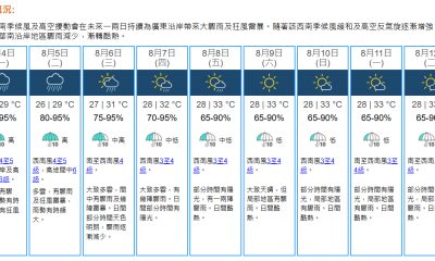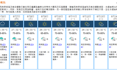 天文台下午5時半發布特別天氣提示,受活躍西南季候風及...