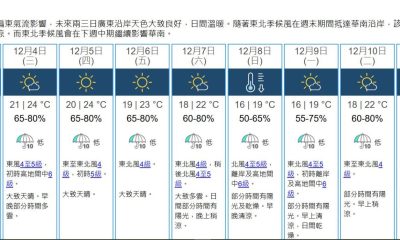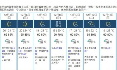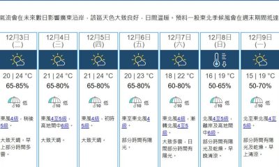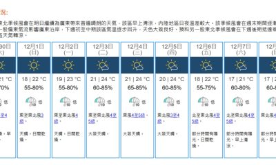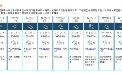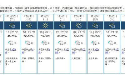 【19:30】本港地區今晚(12月1日)及明日(12...