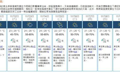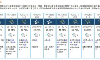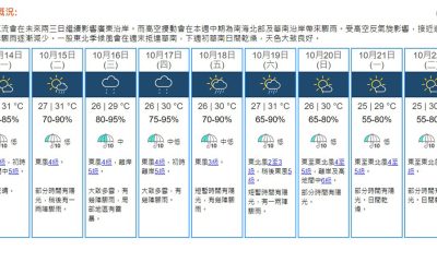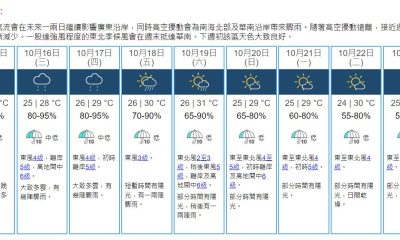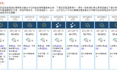 【19:30】天文台預測本港地區今晚(19日)及明日...
