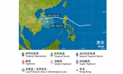 【12:06】天文台表示,根據現時預測,熱帶氣旋潭美...