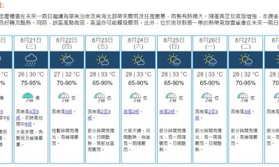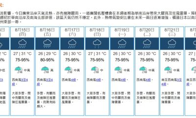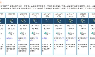 上午8時半,天文台錄得26.9°C,相對濕度89%。...