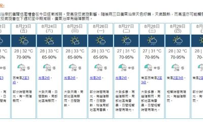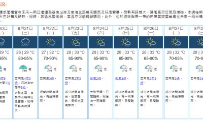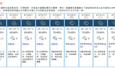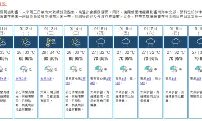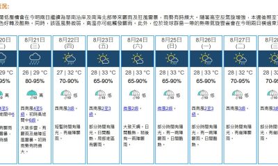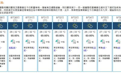 【22:20】天文台考慮明日(3日)下午至晚上發出一...