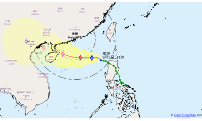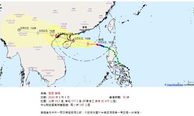 【22:00】按照現時預測路徑,摩羯今晚(3日)至明...