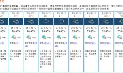 【18:36】天文台表示,位於南海中南部的廣闊低壓區...