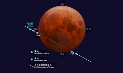 「血月」月全食與另一天文現象「月掩天王星」,今晚(8...