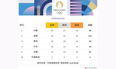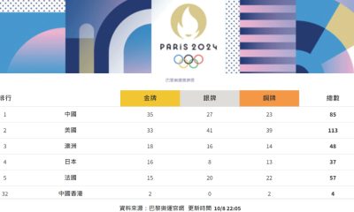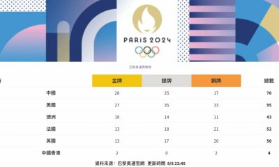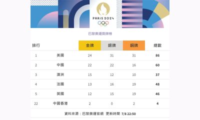 【10:45】奧運第14日比賽結束,國家隊單日增4金...
