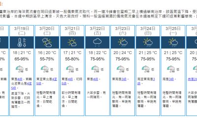 【19:45】溫暖潮濕海洋氣流正影響廣東沿岸。此外,...