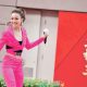 【明報專訊】一身桃紅色打扮的容祖兒昨日到沙田馬場出席...
