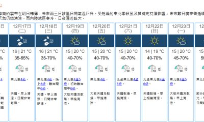 本港天氣周六(16日)起明顯轉冷,天文台預料一道冷鋒...