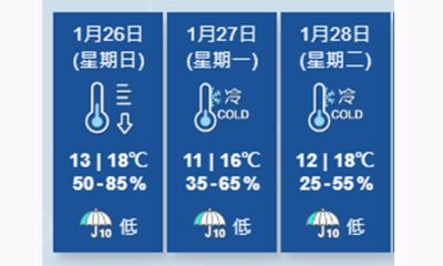 天文台上午11時發出寒冷天氣警告。天文台預測本港未來...