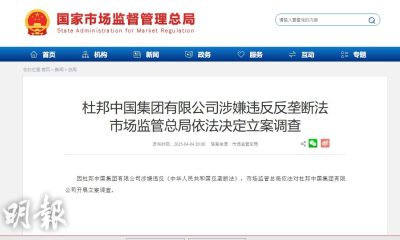 中國市場監管總局4月4日公告,因杜邦中國集團有限公司...