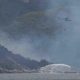希臘周日(11日)起發生山火,從法新社航拍片段可見,...