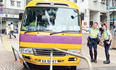 【明報專訊】一名校巴司機前日在鑽石山宏景花園遭溜前校...