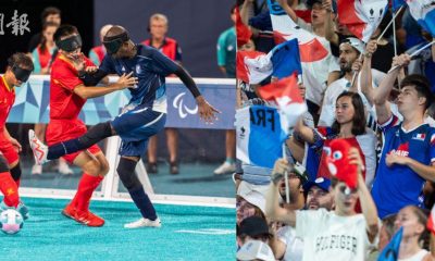 巴黎殘奧的盲人足球比賽近日在艾菲爾鐵塔前舉行,國家隊...