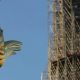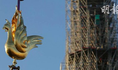 巴黎聖母院上周六(16日)重新在塔尖安放公雞風向標,...