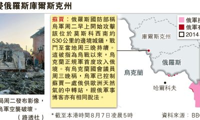 【明報專訊】烏軍反侵俄羅斯本土至昨日(10日)進入第...