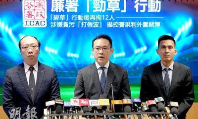 廉署上月拘捕12人,涉嫌藉賄賂本港足球隊成員操控賽果...
