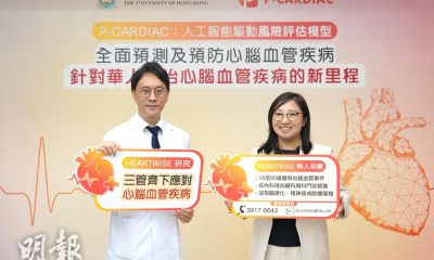 心臟病及腦血管疾病屬本港五大死因。香港大學早前研發本...