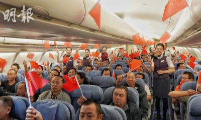 【明報專訊】首架接返自蘇丹撤離中國公民的臨時航班,昨...