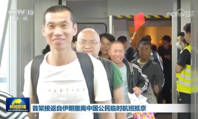 首架接返自伊朗撤離中國公民的臨時航班6月20日傍晚抵...