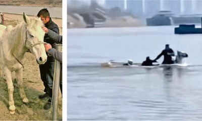 【明報專訊】湖北仙桃馱主跳江救人的「白龍」馬前天晚間...