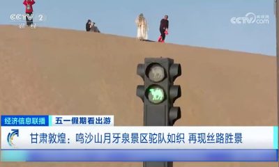 內地「五一長假」,多地景區迫爆,甘肅敦煌鳴沙山月牙泉...