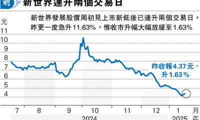 【明報專訊】新世界發展(0017)股價自去年12月2...
