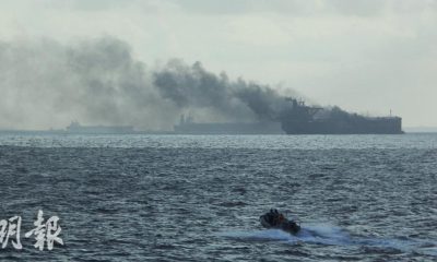 兩艘大型油輪周五(19日)早上在新加坡起火,當局已救...