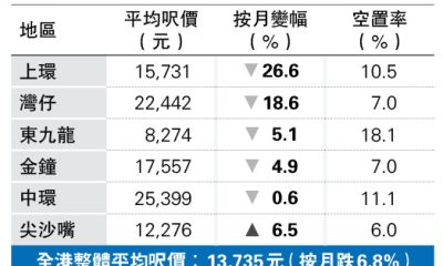 【明報專訊】《施政報告》出台前,綜合市場資訊,本月迄...