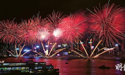 【明報專訊】大年初二新春煙花匯演昨晚8時在維港上空上...