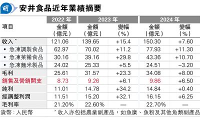 【明報專訊】A+H新股熱潮持續,急凍食品商安井食品(...