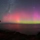 新西蘭上空周一(24日)晚上出現五彩繽紛的南極光,呈...