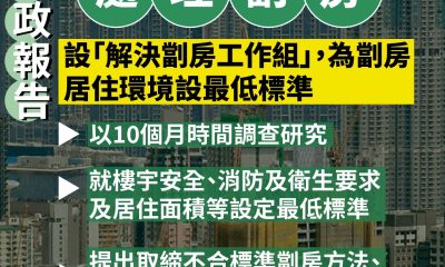 《施政報告》設立「解決劏房工作組」,由財政司副司長任...