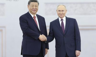 中國國家主席習近平同俄羅斯總統普京當地時間5月8日中...
