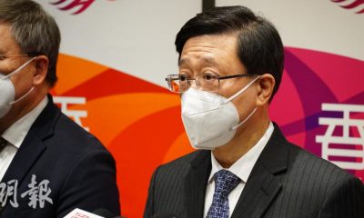 特首李家超今早(2月28日)在行會前見記者,宣布撤銷...