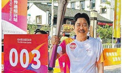 【明報專訊】杭州第19屆亞運會火炬傳遞紹興站活動,昨...